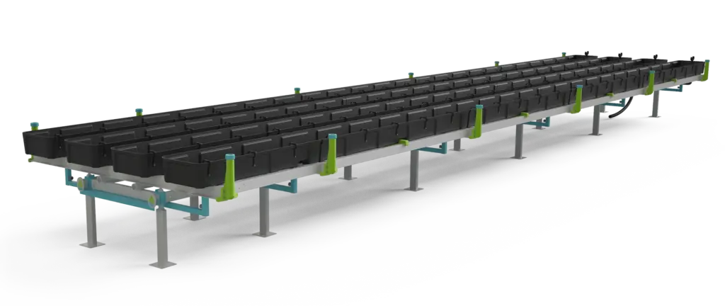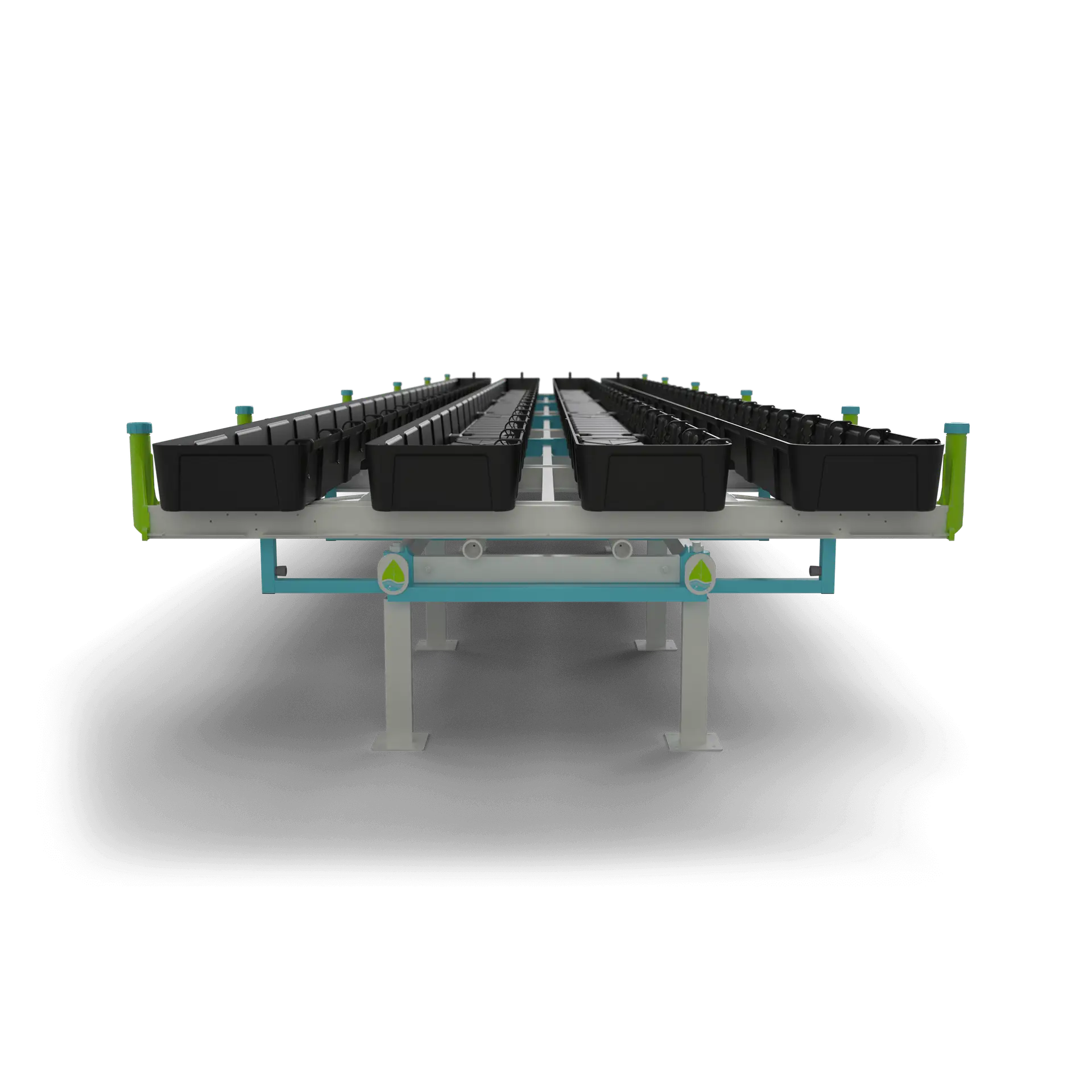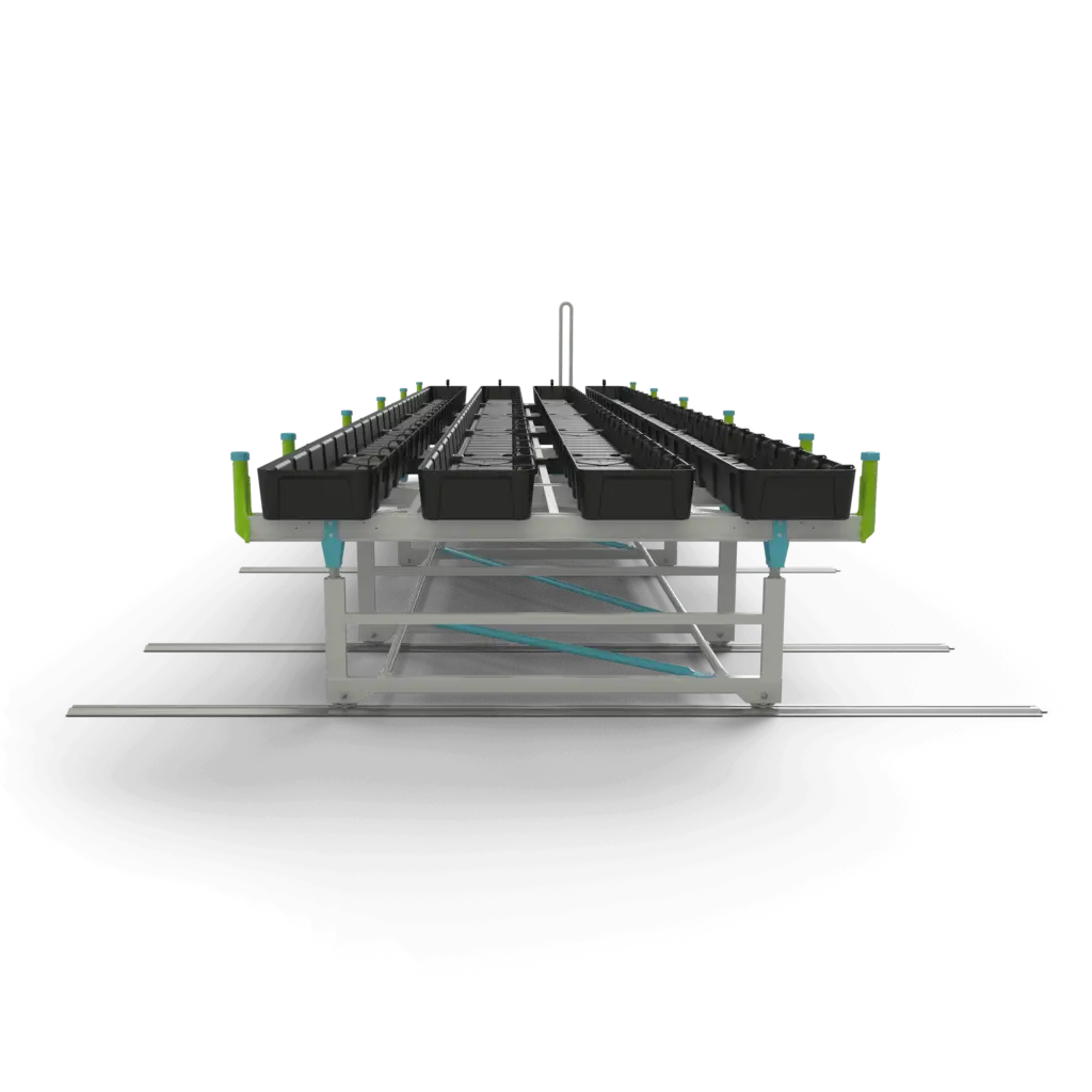 The Track Bench takes things to the next level, designed for maximum plant density and ergonomic movement. Instead of rollers, it uses stainless steel tracks with skate assemblies that allow the bench to glide effortlessly.