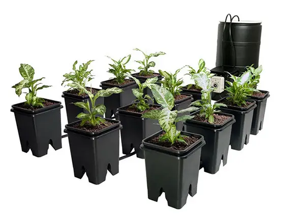 Here, drippers will slowly feed the plants. The main advantage of a drip system is the ability to control how much the plants are fed.